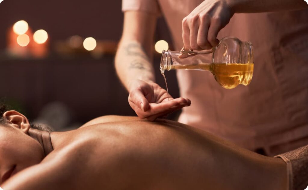 揉みほぐしながらオイルリンパマッサージをおこないます。 ドライマッサージと併用するとより効果が得られます。